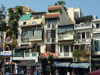 Hanoi ist die verrueckteste Stadt, die ich je gesehen habe :-) Sehr farbig, sehr lebendig, und der Verkehr ist der reine Wahnsinn! Es gibt kaum Ampeln, es wird einfach gefahren. Auf Kreuzungen fahren alle bis ungefaehr zur mitte, bis einfach nichts mehr geht, es gibt anscheinend keine Regeln, das wichtigste ist hupen :-)